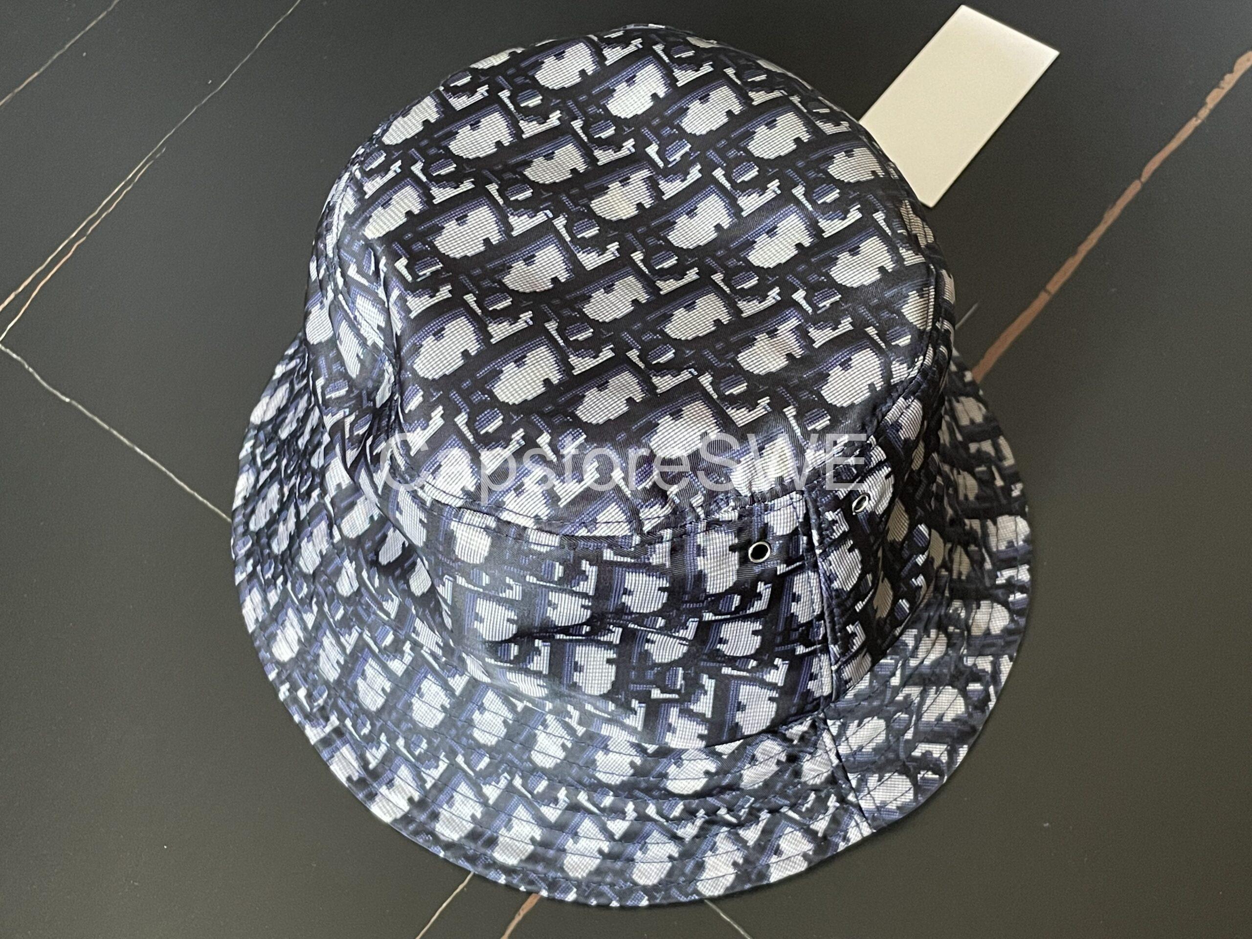 The Dior Oblique Bucket Hat is crafted from high-quality fabric and detailed with the house’s signature Oblique motif in a striking black and white contrast. Its lightweight structure and breathable eyelets provide comfort and practicality, while the soft brim maintains a relaxed yet refined silhouette. Perfect for styling with everyday outfits or upscale casual wear, this bucket hat embodies Dior’s blend of luxury and modern street culture.