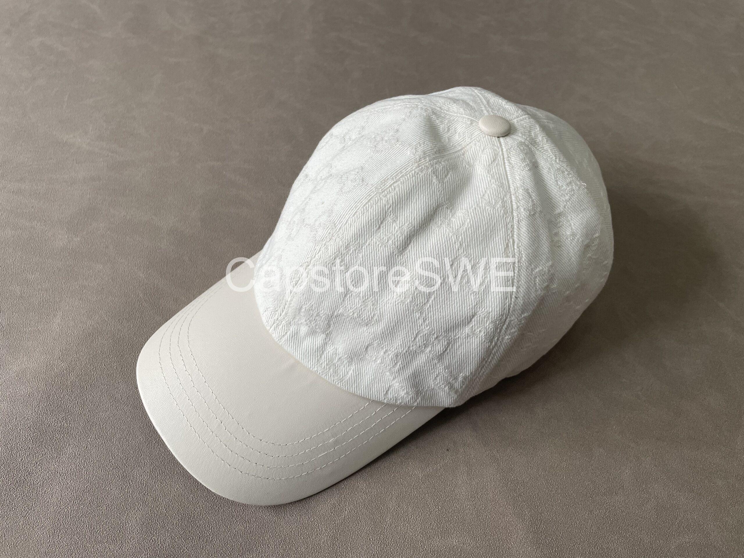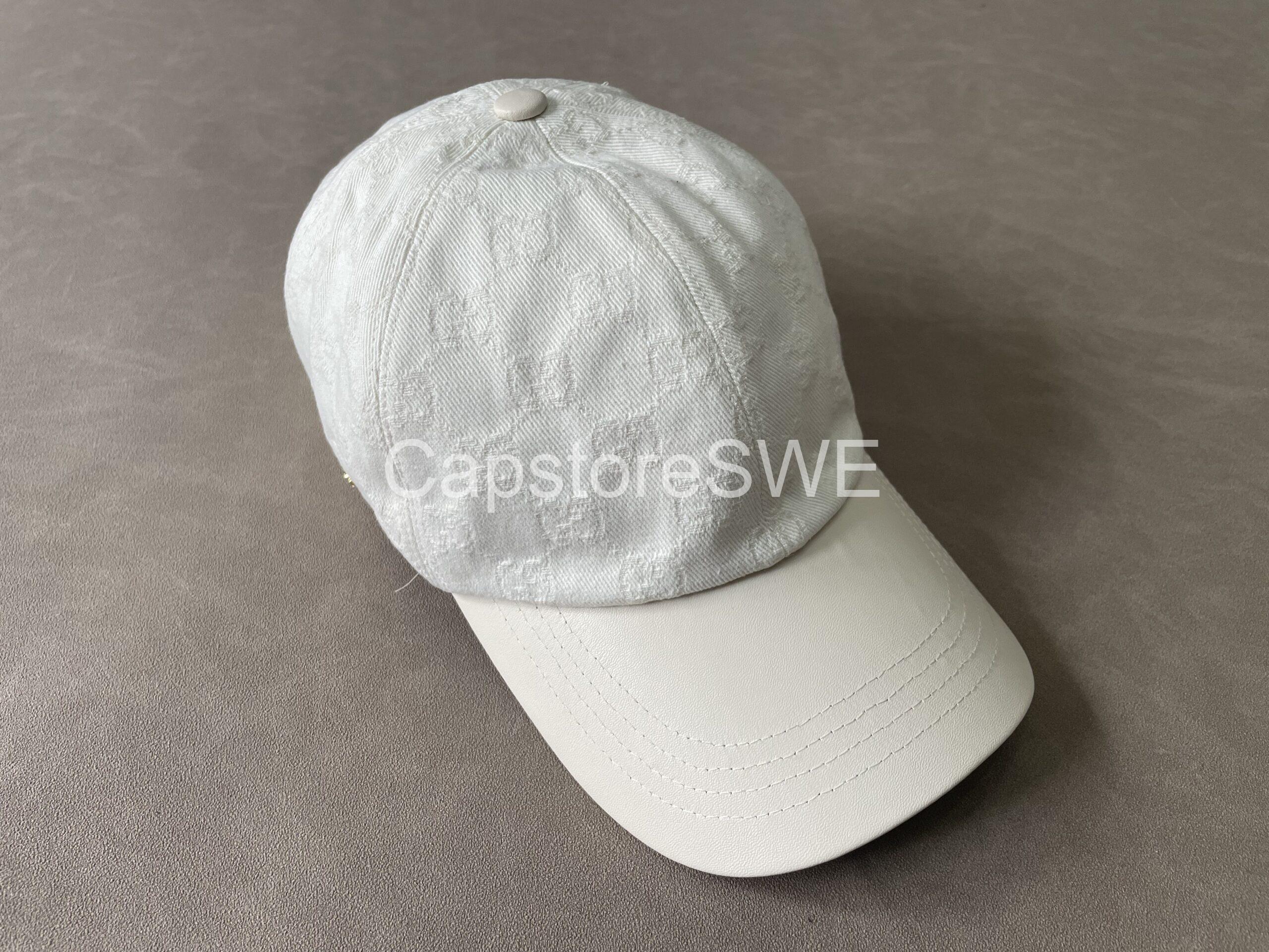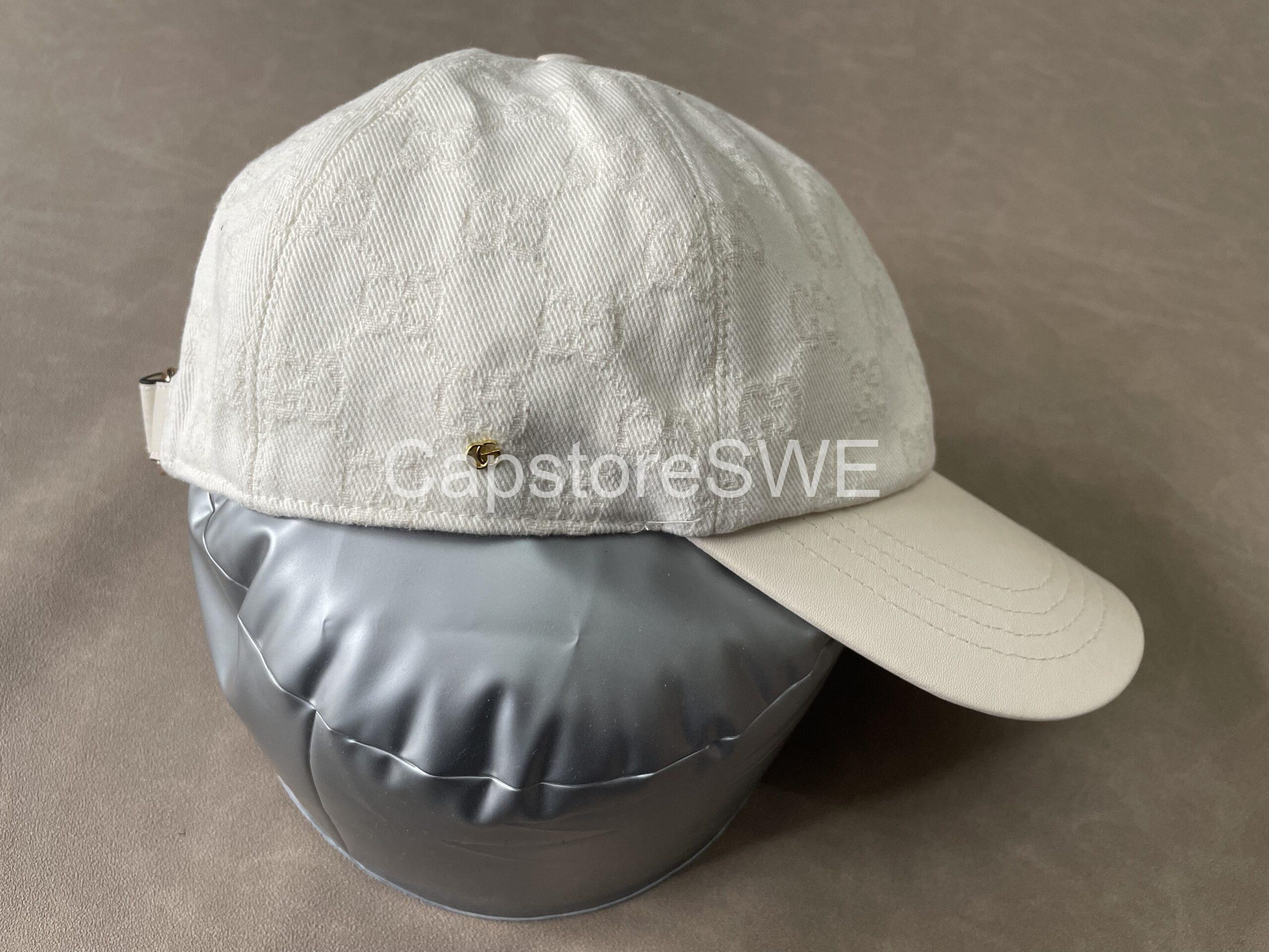 The Gucci GG Monogram Cotton Canvas Cap brings timeless sophistication to casual wear. Designed in a fresh white shade, it features Gucci’s iconic all-over GG monogram pattern subtly embossed into the cotton canvas. A golden “G” detail on the side adds a touch of understated luxury. With its structured silhouette, curved brim, and adjustable back strap, this cap perfectly balances everyday comfort with high-fashion appeal.