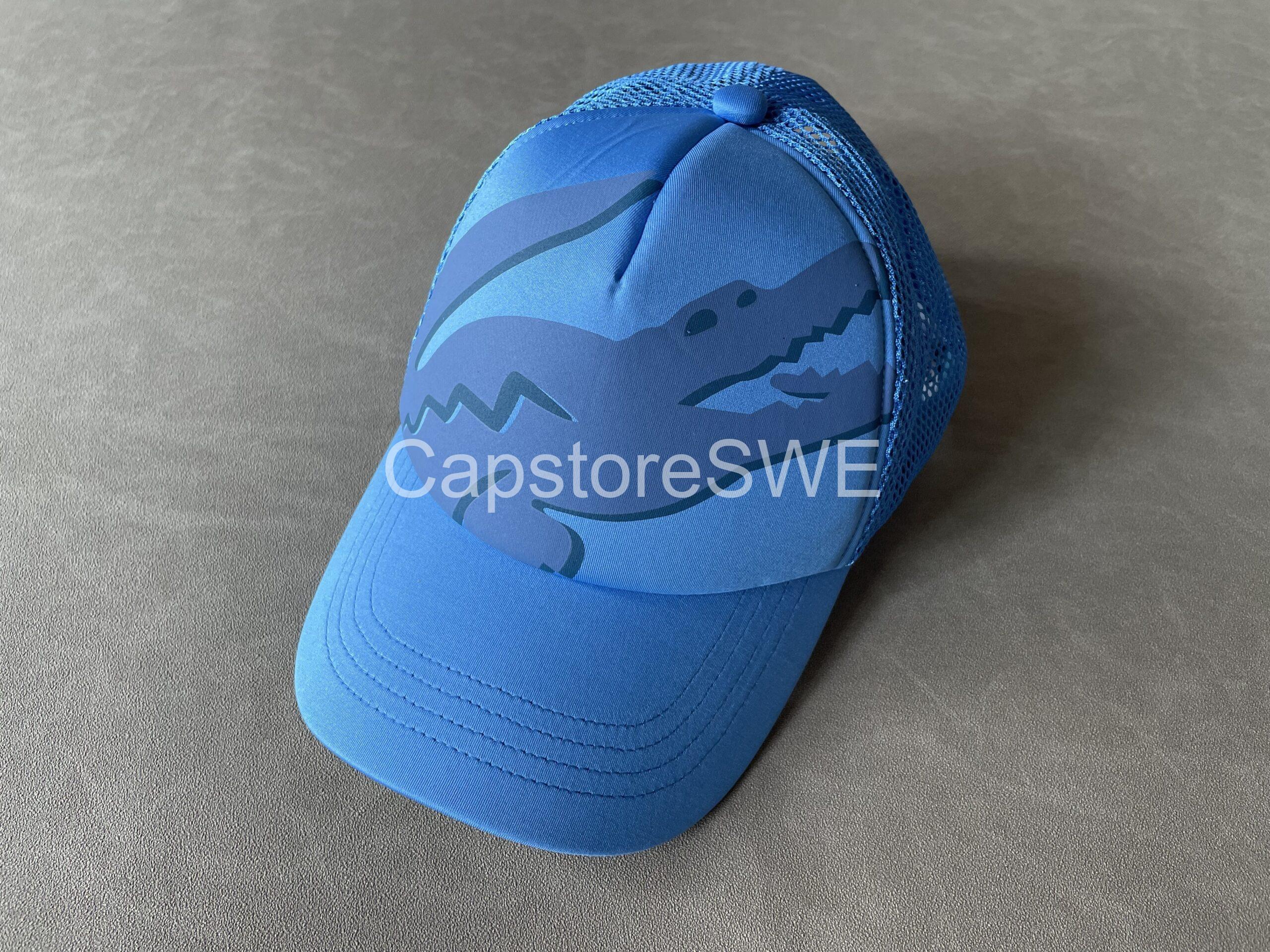 A sporty Lacoste trucker cap in vibrant blue, featuring breathable mesh panels and the iconic crocodile logo for an athletic finish.